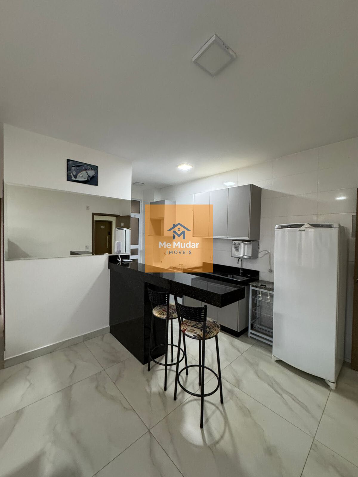 Os dois quartos contam com ar-condicionado, 1 já com guarda roupas, sala com sofá e painel, cozinha com armários, geladeira filtro e fogão.